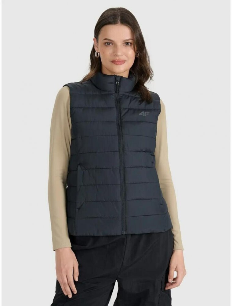 Dámská prošívaná vesta od značky 4F je ideální volbou pro přechodné období i mírnější zimní dny, kdy oceníte lehkou a praktickou vrstvu navíc. Má střih regular, který se pohodlně přizpůsobí postavě a zároveň umožňuje volnost pohybu. Syntetická výplň zajišťuje optimální tepelný komfort a lehkost, aniž by vestu zbytečně zatěžovala. Vysoký stojáček chrání krk před větrem a chladem, zatímco hlavní zip po celé délce umožňuje snadné oblékání a regulaci teploty. Na přední straně se nacházejí dvě boční kapsy, které poskytují prostor pro uložení drobností nebo ohřátí rukou. Decentní logo 4F na hrudi podtrhuje sportovní a moderní vzhled tohoto modelu.