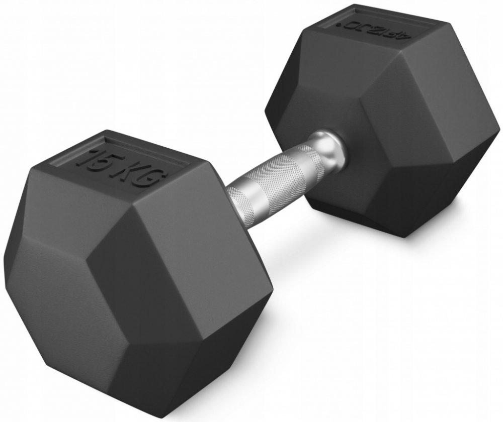 Ocelové činky HEX pro silový trénink 4FIZJO 15 kg (1 kus)