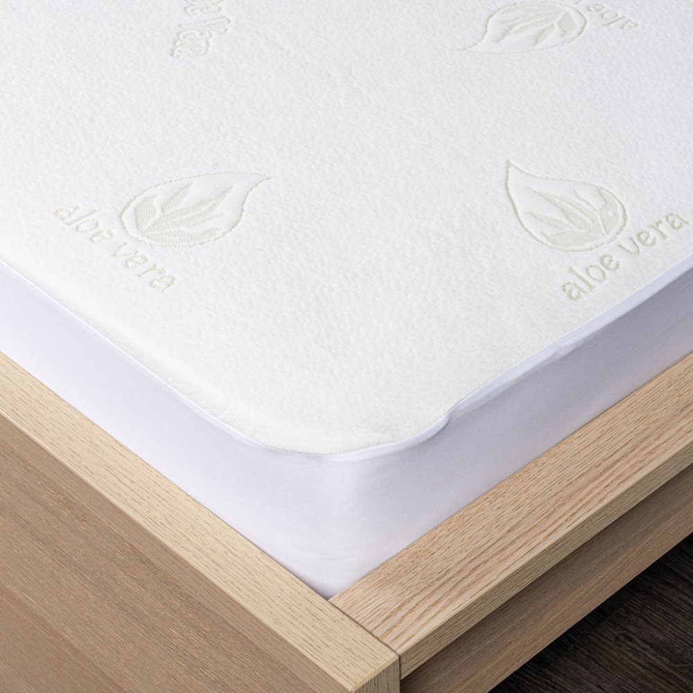 Skvělý pomocník pro zdravý spánek. Tento unikátní chránič matrace Aloe Vera přinese vaší posteli dokonalou čistotu i maximální pohodlí. Je měkký, prodyšný a díky obsahu blahodárných výtažků z Aloe Vera má pozitivní účinky na zdraví (zejména pokožku), pomáhá zklidnění a relaxaci, a navíc se může pochlubit antibakteriálními vlastnostmi. Pravidelné používání chrániče prodlužuje životnost vaší matrace a zabraňuje pronikání potu i špíny do matrace, zaručí tak dokonalou hygienu vašeho lůžka. Chránič matrace snadno sejmete a vyperete, takže údržba je téměř bez práce. Chránič je opatřený praktickým lemem pro snadné uchycení k matraci – používá se stejně jednoduše jako napínací prostěradlo a je vhodný na matrace o maximální výšce 30 cm.Chránič matrace je opatřen certifikátem Öko-Tex Standard 100.