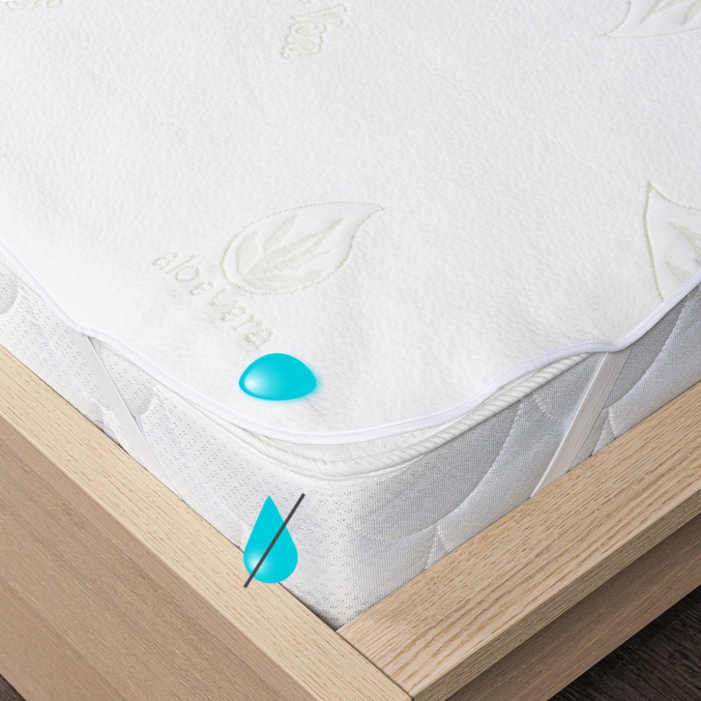 Skvělý pomocník pro zdravý spánek. Tento unikátní nepropustný chránič matrace Aloe Vera přinese vaší posteli dokonalou čistotu i maximální pohodlí. Je měkký, prodyšný a díky obsahu blahodárných výtažků z Aloe Vera má pozitivní účinky na zdraví (zejména pokožku), pomáhá zklidnění a relaxaci, a navíc se může pochlubit antibakteriálními vlastnostmi. Pravidelné používání chrániče prodlužuje životnost vaší matrace a zabraňuje pronikání potu i špíny do matrace, zaručí tak dokonalou hygienu vašeho lůžka. Chránič matrace snadno sejmete a vyperete, takže údržba je téměř bez práce. Díky nepropustné úpravě v podobě polyuretanového zátěru se navíc nemusíte bát žádných nepříjemných nehod, které by nenávratně poškodily vaši matraci. Je tedy skvělý také pro děti.V rozích chrániče jsou praktické gumy pro snadné uchycení k matraci – zůstane tak vždy na svém místě. Je vhodný na matrace o maximální výšce 30 cm.Chránič matrace je opatřen certifikátem Öko-Tex Standard 100.