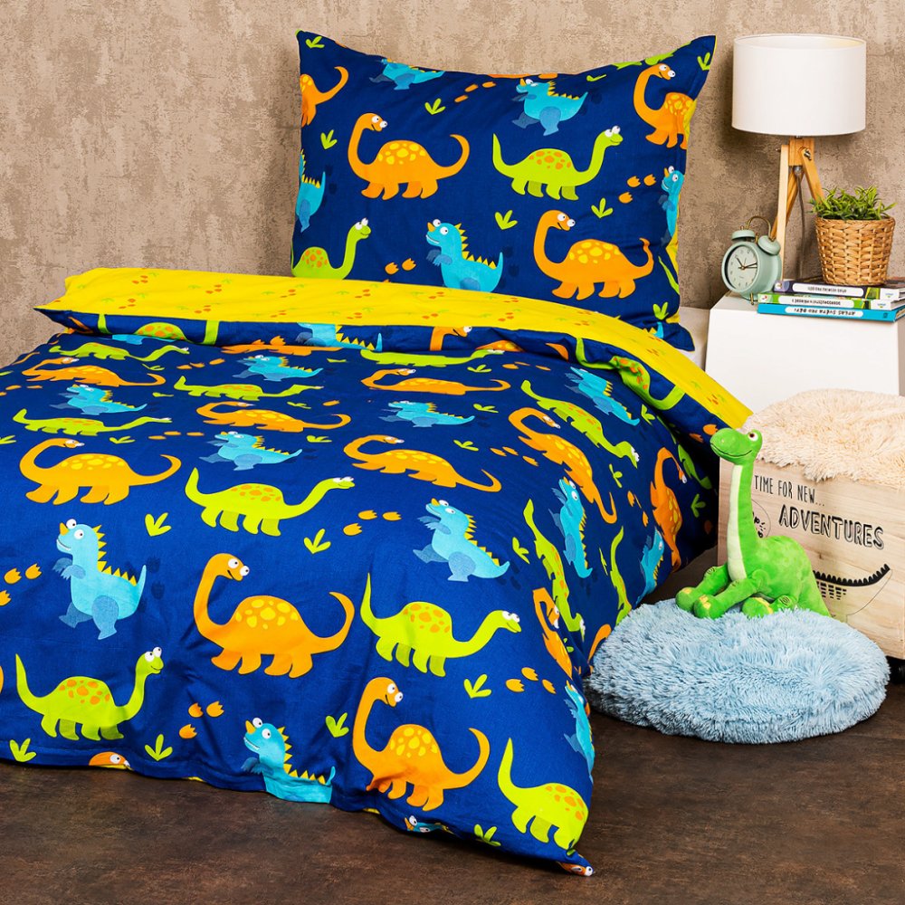 Hurá za dobrodružstvím do pravěku! Pestrobarevné bavlněné povlečení s rozvernými dinosaury rozhodně potěší duši každého malého obdivovatele těchto prehistorických velikánů. Povlečení je oboustranné – jedna strana zářivě modrá s barevnými dinosaury, druhá strana má veselou žlutou barvu a decentní vzor.Kvalitní 100% bavlna zajistí maximální komfort a je šetrná i k citlivé dětské pokožce. Můžete tak...