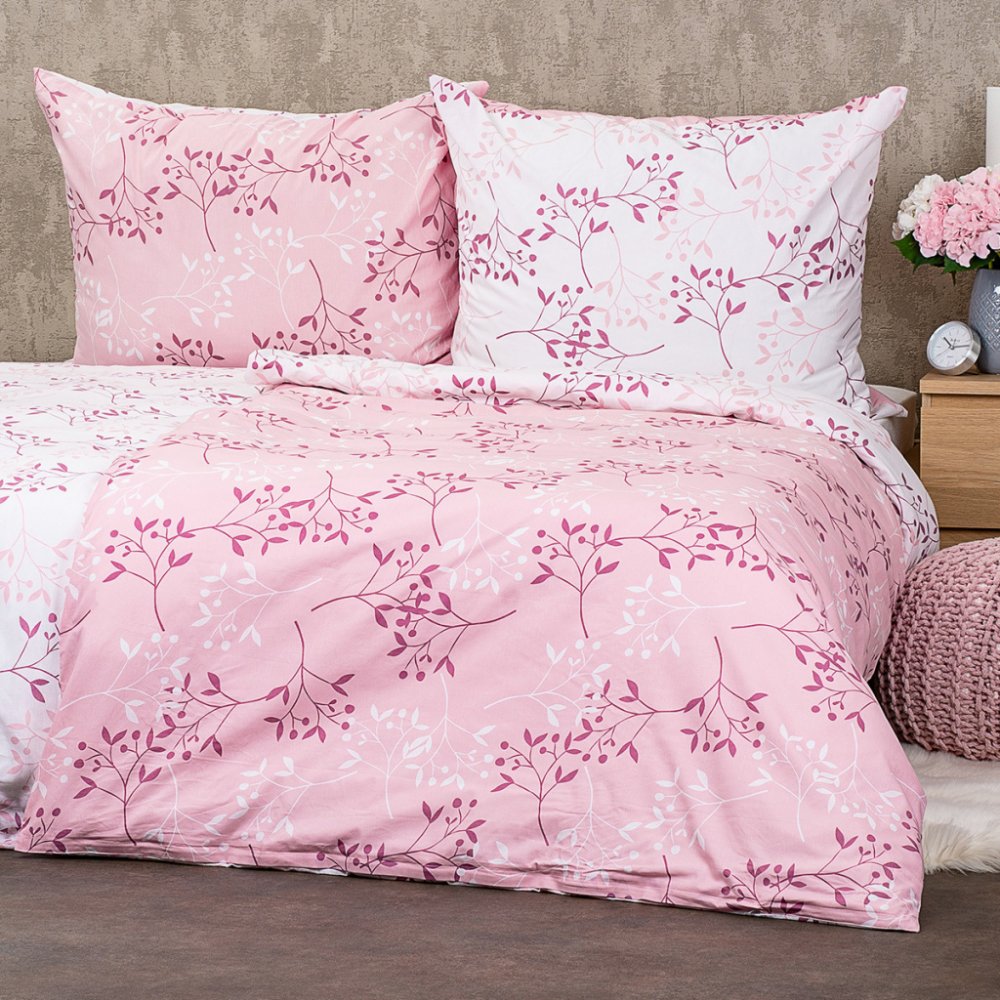 Bavlněné povlečení Harmony od značky 4Home přináší do ložnice elegantní spojení přírodního motivu a romantického růžového odstínu, které vytváří harmonické prostředí pro ničím nerušený spánek. Jemný vzor větviček na světle růžovém podkladu působí decentně, zatímco druhá strana s bílým základem a nabízí svěží alternativu. Díky oboustrannému provedení můžete snadno měnit styl povlečení podle nálady...