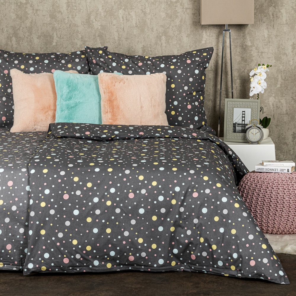 Dodejte své ložnici mladistvý šmrnc! Pastelové puntíky na šedém podkladu jsou tou správnou volbou pro všechny, kteří si nepotrpí na konvence. Rozverné bavlněné povlečení s puntíky v různých barvách i velikostech roztančí vaši fantazii a vnese do vašich snů jen samá veselá dobrodružství. Navíc se bude skvěle vyjímat i v dětském pokoji. Měkká a příjemná 100% bavlna vám zajistí pohodlný spánek. Povl...