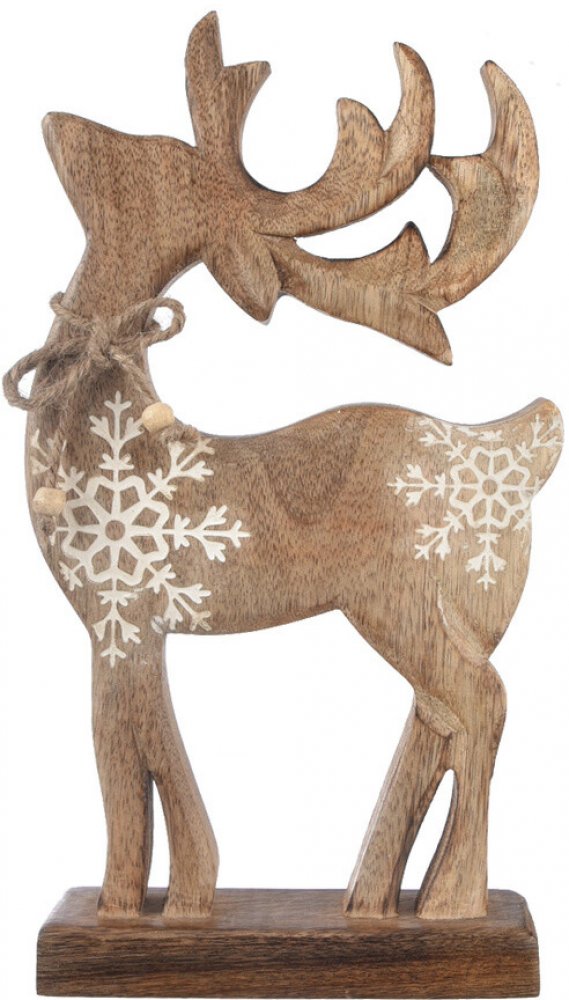 4Home Dekorace z mangového dřeva Snowflake Deer 33 cm