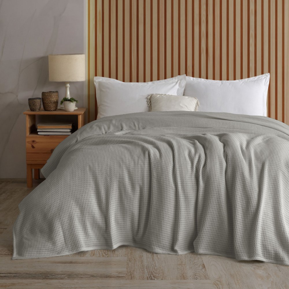 Bavlněný přehoz na postel v neutrální šedé barvě vyladí vaši ložnici k dokonalosti a vždy zajistí dokonale ustlanou postel. Světle šedá barva dodá celkovému designu nejen nádech luxusu, ale dokáže navodit i pocit klidu a pohodlí. Jako neutrální odstín se skvěle hodí různým interiérovým stylům a barevným kombinacím. Přehoz je vyroben z vysoce kvalitní bavlny, která je příjemná na dotek a zajistí maximální pohodlí.Přehoz na postel z měkoučké 100% bavlny v oblíbeném pleteném vzhledu bude nejen poutavým doplňkem pro dokonalé hřejivé kouzlo domova, ale díky příjemnému materiálu ho využijete i jako velikánskou deku, do které se pohodlně zachumlá celá rodina. Přehoz ochrání vaše povlečení před vyblednutím i všudypřítomným prachem, a navíc bude vaše postel vždy rychle ustlaná.Pokyny k údržbě: doporučujeme sušení ve vodorovné poloze z důvodu zachování kvality a rozměrů přehozu.
