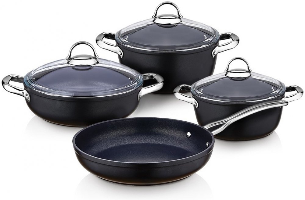 Sada luxusního nádobí pro každodenní vaření s dokonalou rovnováhou mezi elegancí, funkčností a odolností. Sada kombinuje špičkový design a prvotřídní materiály, aby se stala nepostradatelným pomocníkem ve vaší kuchyni. Každý kus je vyroben z vysoce kvalitního litého hliníku o tloušťce 4 mm, čímž zaručuje vynikající distribuci tepla a odolnost při každodenním používání. Speciální vysoce nepřilnavý povrch je vyztužený titanem, který zajišťuje výjimečnou trvanlivost a odolnost proti opotřebení a poškrábání. Je ideální pro vaření při vysokých teplotách a přípravu zdravých jídel bez připalování a s minimální potřebou tuku. Navíc neobsahuje PFOA a je bezpečný pro vaši rodinu.Ergonomické rukojeti a precizní design zajišťují jednoduchou manipulaci a maximální pohodlí při vaření. Díky indukčnímu dnu se teplo rozprostírá rovnoměrně a efektivně, což zajišťuje perfektní výsledky na všech typech varných desek.Sada je perfektní volbou pro každého, kdo ocení kvalitní kuchyňské nádobí, které dlouho vydrží. Vhodné do myčky nádobí.Sada obsahuje: