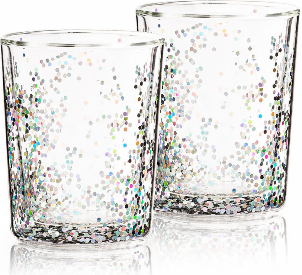 Jedinečná termo sklenice s konfetami oživí každou party i každodenní stolování. Dvojité sklo je vyplněné lesklými stříbrnými konfetami s odlesky, které udělají i z obyčejného nápoje doslova pastvu pro oko. Flitry se mezi stěnami pohybují na volno, takže se budou krásně třpytit při každém pohybu skleničkou, ať už si vychutnáváte lahodný čaj pro zahřátí nebo osvěžující chlazený drink.Termo sklenice jsou ručně vyráběny z lehkého žáruvzdorného borosilikátového skla s dvojitou stěnou, které díky vytvořenému vakuu dokáže dlouho udržet ideální teplotu a nepřenáší teplo ani chlad na vnější část. Díky termoizolačním vlastnostem tak zůstává sklenice i při použití horkého nápoje chladná a nepálí. V případě studených nápojů zase nedochází k rosení vnější stěny sklenic, nápoj vám tak rychle nezteplá a led neroztaje.Výhodou borosilikátového skla oproti sklu tradičnímu je jeho vysoká odolnost vůči vysokým a nízkým teplotám, mechanickému poškození a působení chemikálií.Výhody: