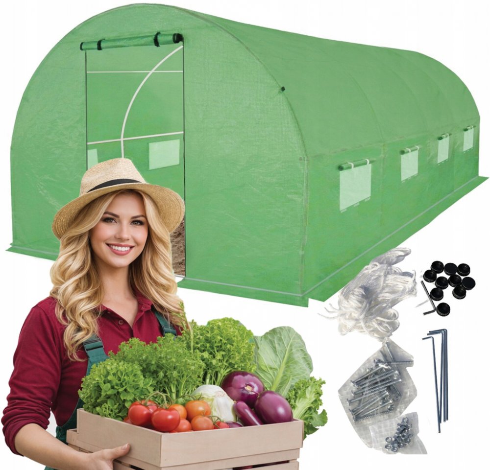 ☘ Foliový tunel 3x6 m - 18 m2 zelený | pozinkované silné trubky | větrání přes 8 oken | Fólie s UV filtrem | snadné pěstování a ochrana rostlin☘