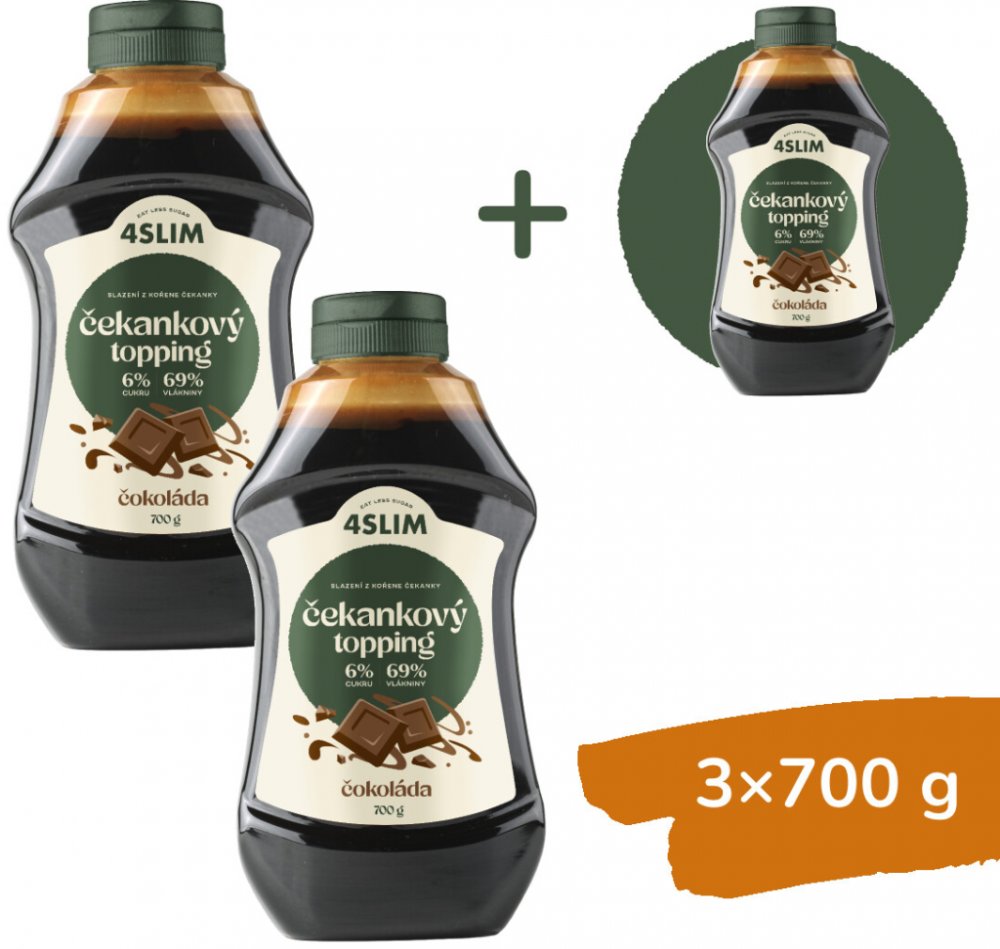 Čekankový topping 4Slim je oblíbenou, ochucenou variantou alternativního slazení. Jedná se o funkční a univerzální sladidlo na přírodní bázi, jehož základem je extrakt z kořene čekanky. 4Slim topping má díky tomuto extraktu přiroze...