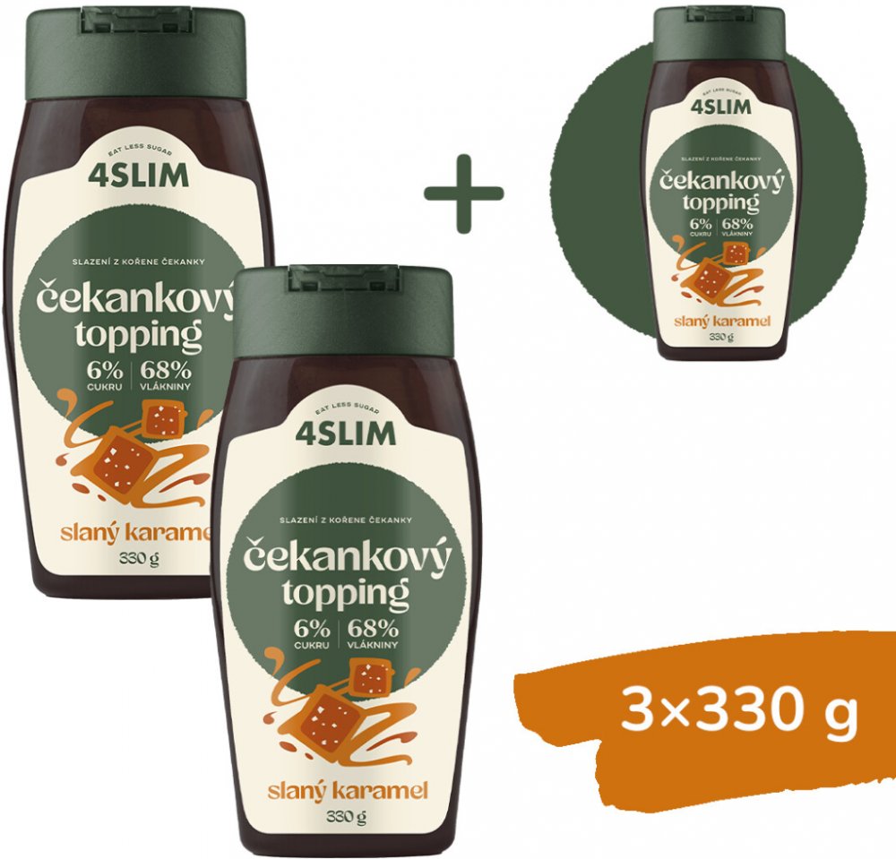Čekankový topping 4slim, to je sladká Low Carb poleva, která se může pyšnit nízkým obsahem cukru a tuku na rozdíl od jiných toppingů. Je zcela bez lepku, bez laktózy, bez konzervačních látek, s vysokým obsahem vlákniny a se sníženou energetickou hodnotou. Proto je vhodná pro všechny druhy diet.