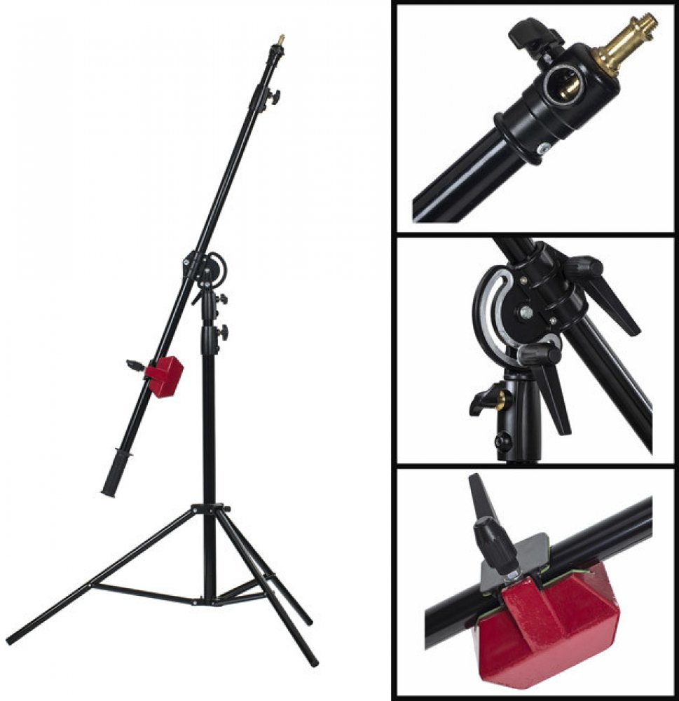 Jeřábový stativ LS-10 je velmi pevný boom stand s maximálním zatížením 5kg. Jeřábový stativ má velmi široké využití ve všech ateliérech, především k zavěšení blesků.