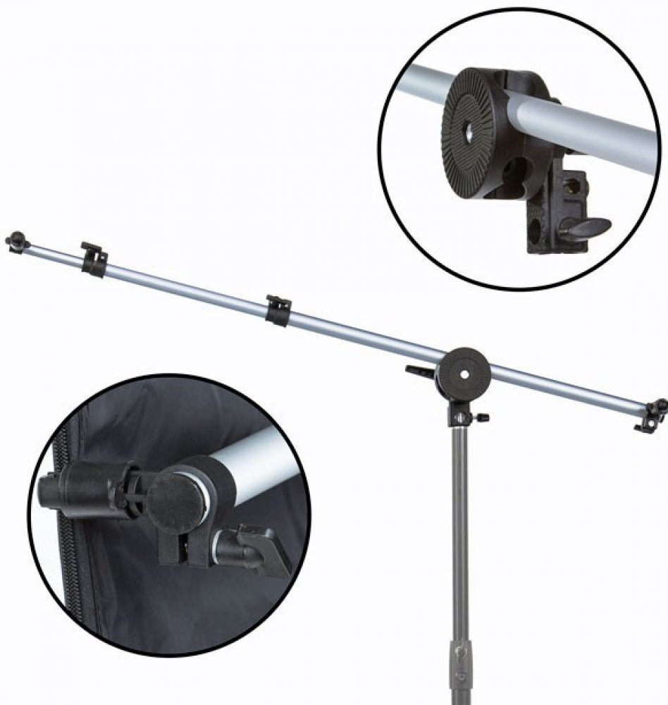 Lehký univerzální držák odrazné desky na stativ. Maximální délka teleskopického ramene je 180 cm a minimální délka je 65 cm. Uchycení na studiový stativ (pomocí univerzální montážní hlavy - součástí balení).