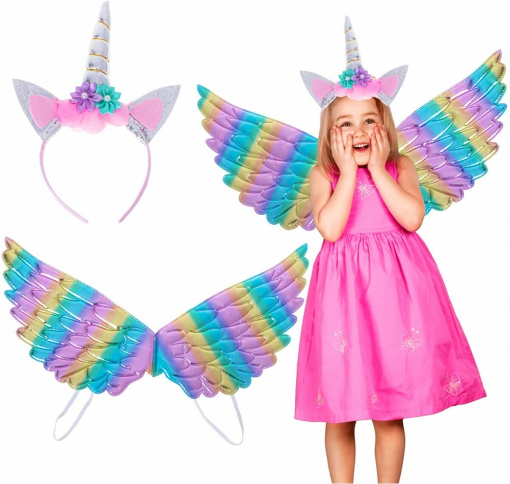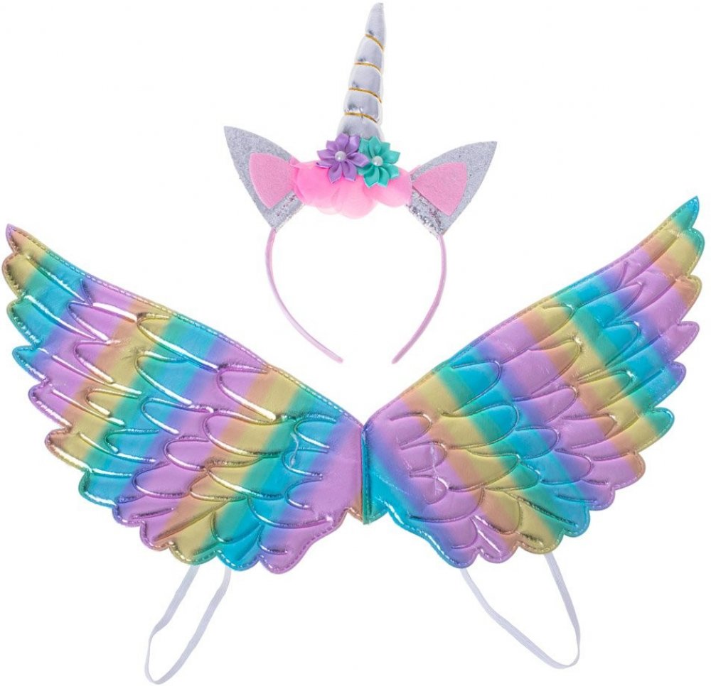 Sada obsahuje čelenku s ušima a výrazným rohem, ale také duhová křídla - vaše dítě se bude moci převléknout za kouzelné zvíře, které všichni tak dobře znají!