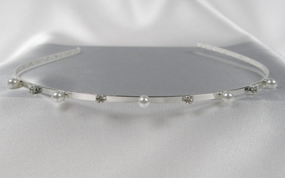 Korunky do vlasů - Čelenky do vlasů bižuterie, 5806-0029, MS01 - Bílé perly, krystal - stříbro. Čelenka bižuteriePerličky d=5mm, štrasová řetězovina se šatony o velikosti ss12 na plochém čelenkovém drátu. Čelenka je originálním výrobkem firmy Bijoux Trend CZ s.r.o. Čelenka bižuterie byal vyrobena v Jablonci nad Nisou včetně její zdravotně nezávadné povrchové úpravy.