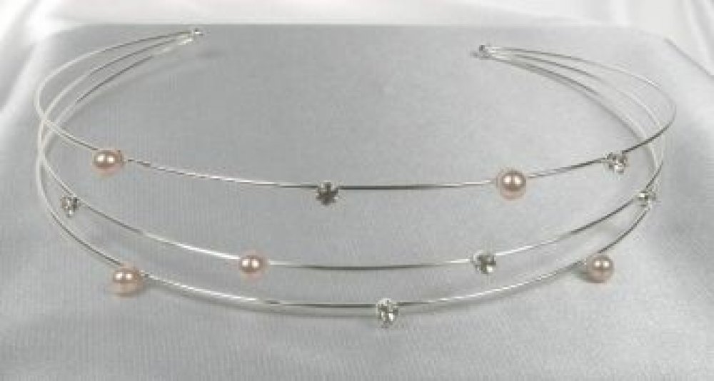 Korunky bižuterie - Čelenky do vlasů bižuterie, 5806-0031, MS01 - perly bílé, krystal - stříbro. Čelenka do vlasů bižuteriePerličky d=5mm, šatony velikosti ss15.5 ve francouzských kotlících na čelenkových drátech o průměru d=1mm.Čelenka je originálním výrobkem firmy Bijoux Trend CZ s.r.o. Čelenka bižuterie byal vyrobena v Jablonci nad Nisou včetně její zdravotně nezávadné povrchové úpravy.