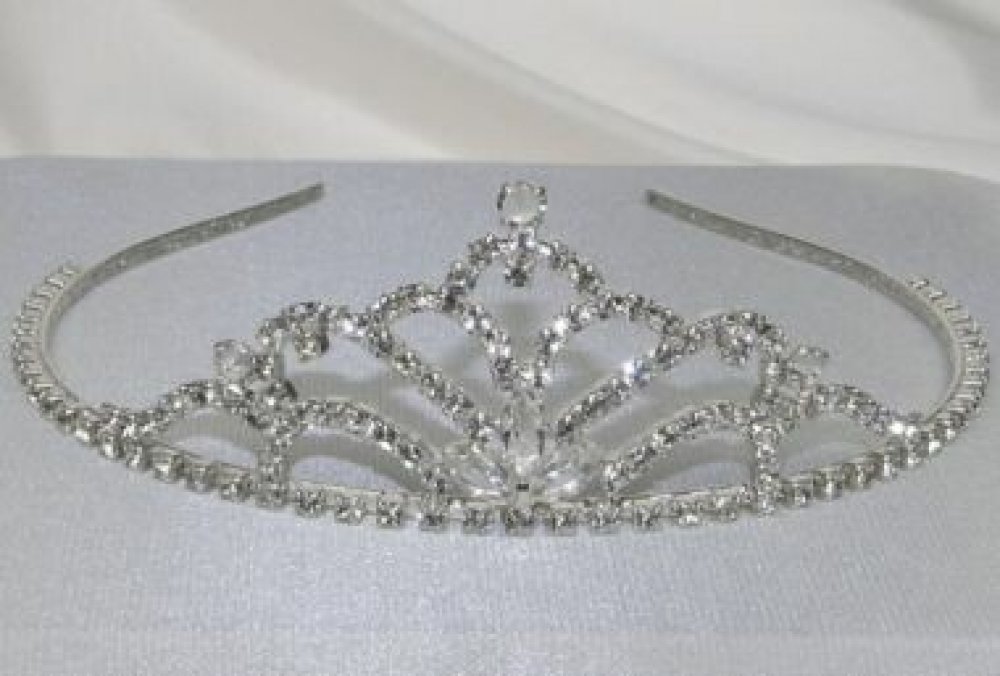 Korunky bižuterie - Korunky bižuterie, 5806-0038-S00, Krystal - stříbro. Korunka štrasové bižuterie. Navety o velikosti 10x5mm, šatony v kotlících chanel o velikosti ss24 a štrasová řetězovina se šatony o velikosti ss12 na plochém čelenkovém drátu. Korunka je originálním výrobkem firmy Bijoux Trend CZ s.r.o. Korunka svatební bižuterie byal vyrobena v Jablonci nad Nisou včetně její zdravotně nezáv...