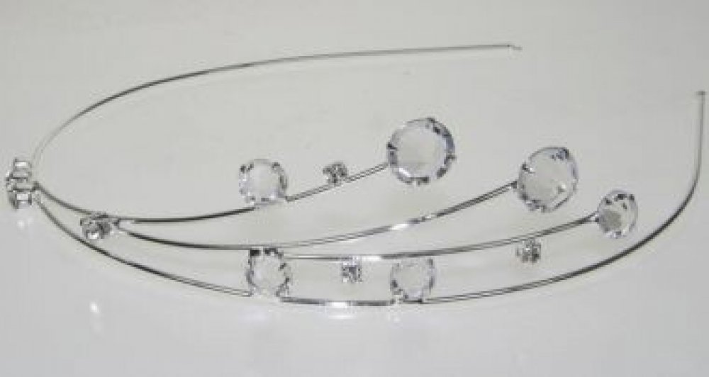 Korunky do vlasů - Čelenky do vlasů bižuterie, 5806-0055, S00 - Krystal - stříbro. Čelenka bižuterieŠatony o průměrech 3.5, 4.5, 8 a 10 na pružných čelenkových drátech o průměru d=1mm. Výška čelenky - cca 3cm Průměr čelenky - cca 12cm Čelenkové dráty s kvalitní stříbrnou galvanizací umožňují libovolné naohýbání dle potřeby účesu či tvaru hlavy. Čelenka je originálním výrobkem firmy Bijoux Trend CZ...