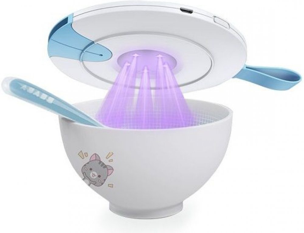 DESIGN: UV sterilizátor pro sterilizaci kojeneckých lahví na cestách. Lehký a kompaktní design sterilizátoru usnadňuje vzít si s sebou kamkoli - dovolená, návštěvy atd.