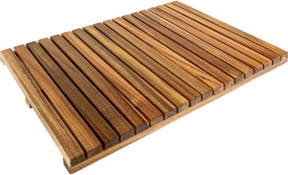 Protiskluzová koupelnová podložka z akáciového dřeva 53x36 cm - vysoká kvalita materiálů zajišťující trvanlivost a odolnost proti vlhkostiVysoká kvalita materiálů: Koupelnová podložka ACACIA je vyrobena z akáciového dřeva, což zajišťuje trvanlivost a odolnost proti vlhkosti. Díky tomu se produkt ideálně hodí do koupelny, vytváří příjemnou atmosféru.Optimální rozměry: Rozměry 53 x 36 x 3 cm činí podložku kompaktní a snadno umístitelnou v různých prostorech. Skvěle se hodí do malých koupelen, kde má každý centimetr význam.Bezpečný povrch: Díky použití protiskluzových podložek z TPE/TPR podložka zajišťuje stabilitu a bezpečnost během používání. Můžete si užívat komfort bez obav z uklouznutí.Estetický design: Přírodní akáciové dřevo dodává podložce elegantní vzhled, který se skvěle hodí do různorodých interiérových aranžmá. Přidá charakter každé koupelně, vytváří útulnou atmosféru.Snadná údržba: Podložka je snadno čistitelná a udržovatelná, což zajišťuje, že si zachovává svůj estetický vzhled po dlouhou dobu. Stačí ji otřít vlhkým hadříkem, abyste si užili její svěžest. Badematte lattenrost "blackacia" 53x36cm aus akazienholz - 5 five simply smart