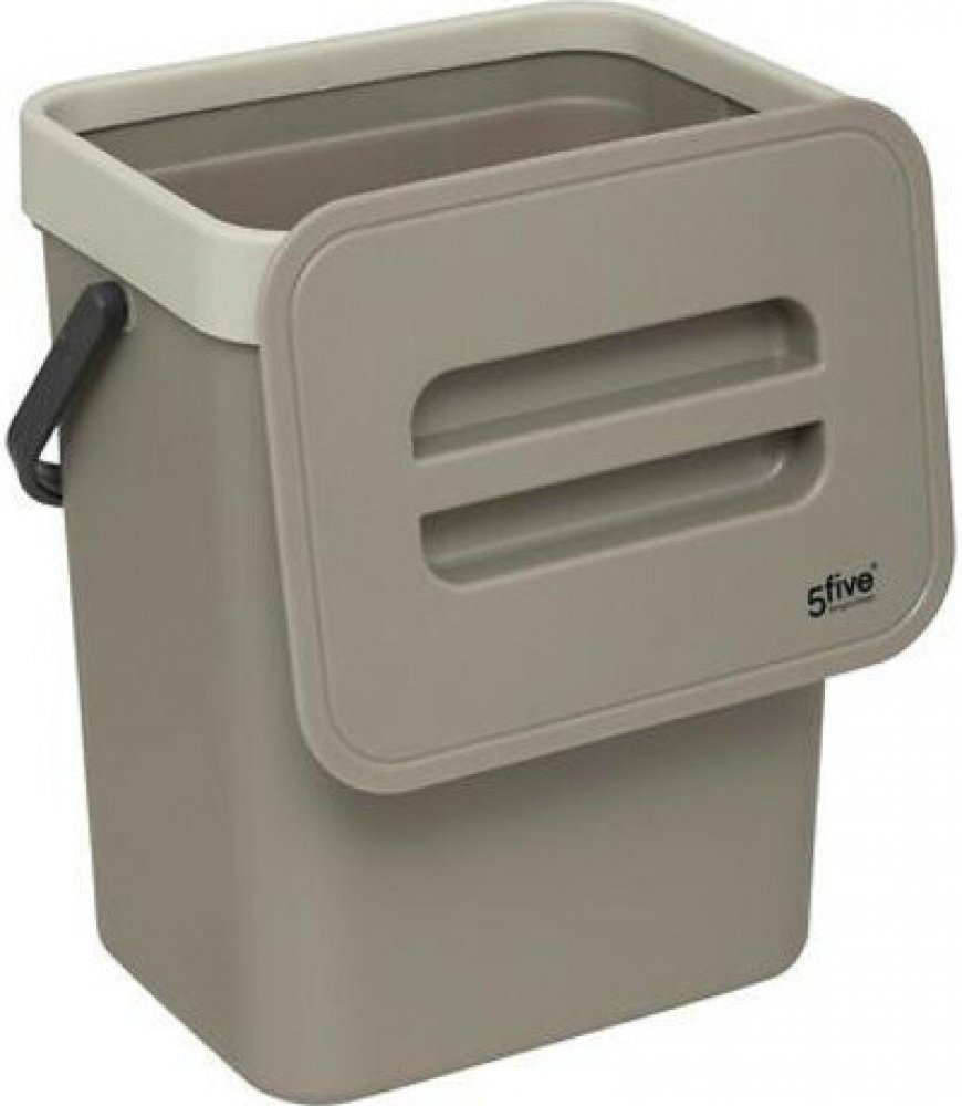 5five simply smart Bežový plastový koš na bioodpad do kuchyně 5 l s háčky