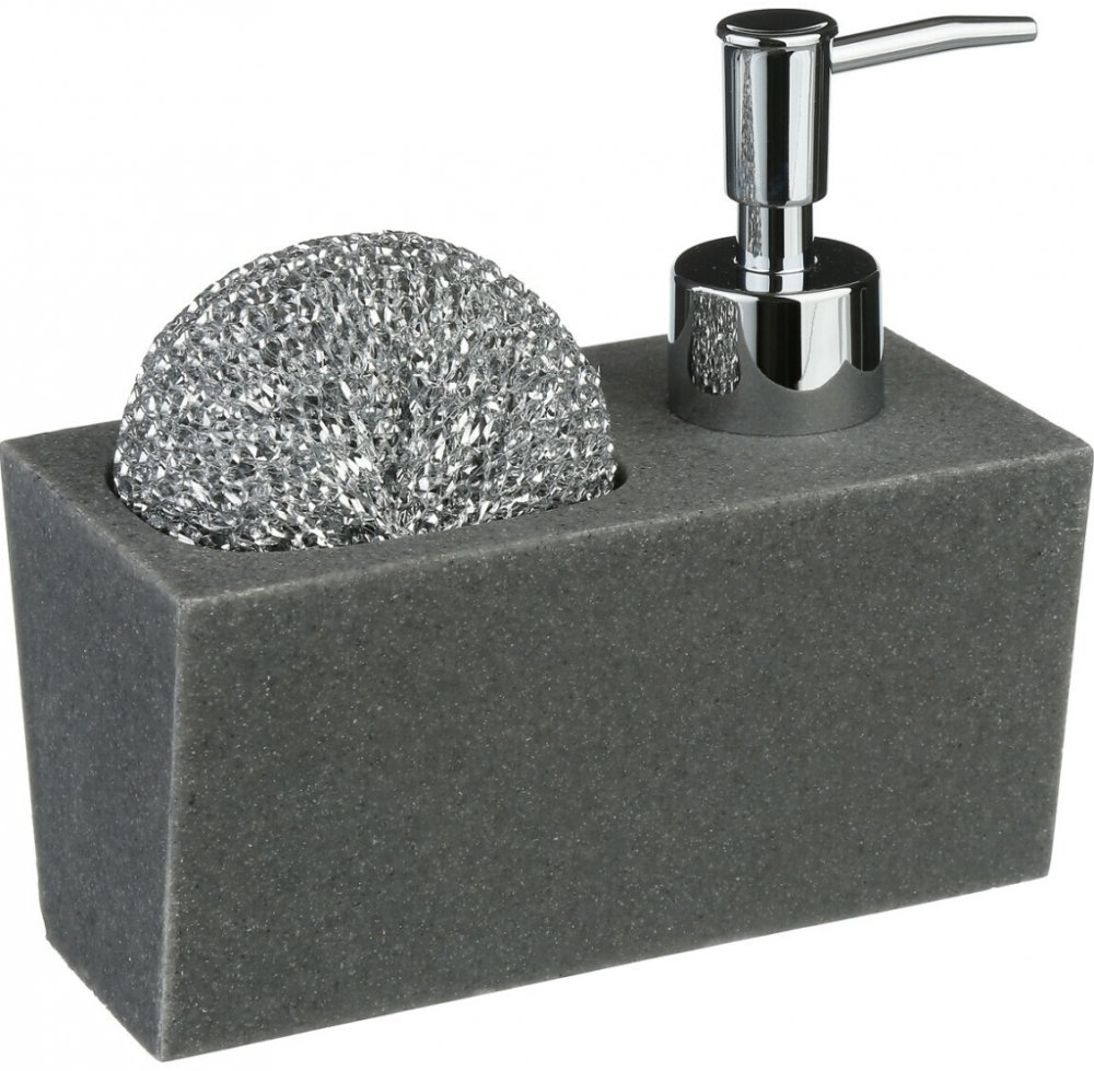 Moderní a praktický dávkovač mycího prostředku s vestavěným prostorem na houbu. Elegantní design v neutrální šedé barvě dokonale zapadne do každé kuchyně a dodá jí moderní vzhled. Pochromovaný aplikátor zajišťuje přesné dávkování tekutiny, což usnadňuje úsporu a snadné použití. Praktické místo na houbu vám umožní udržovat pořádek kolem dřezu a přiložená houba je jako stvořená pro každodenní čištěn...