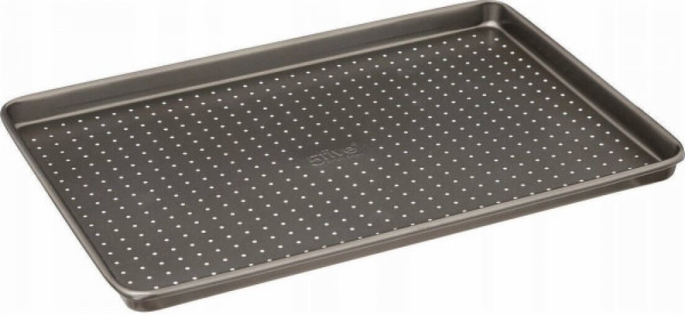 - Kompaktní rozměry a lehký design: Plech je malý: 39,2 x 27 x 2 cm, proto se hodí do většiny standardních trub a navíc se snadno skladuje.