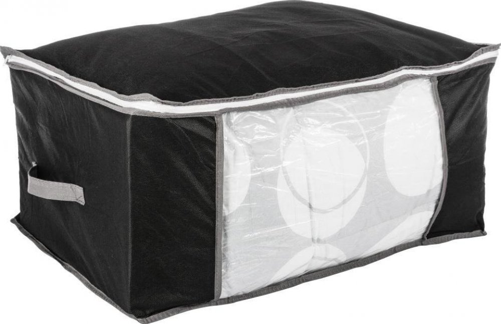 Kryt na ložní prádlo, oblečení, 60x45x30 cm, černá, ceněná značka 5five Simple Smart je vyrobena z vysoce kvalitního plastu, který se vyznačuje vysokou trvanlivostí a odolností vůči plynutí času. Kryt chrání oděv před škodlivými vnějšími faktory, jako jsou sluneční paprsky, které mohou způsobit vyblednutí barev a roztočů. Kryt je vyroben z prodyšného materiálu, takže oblečení uložené v něm nebude mít nepříjemný, zastaralý zápach. Správně uložené oblečení vám bude sloužit po dlouhou dobu a bude vypadat senzační i po měsících stárnutí pod postelí. Kryt je ideální pro ukládání sezónních oděvů, které často vezmeme do podkroví, do suterénu nebo se schováváme pod postelí. S ním ušetříte místo ve skříni. Bude užitečné při pohybu nebo při opravě domu, když potřebujete dodatečně chránit oblečení před prachem a prachem. Kromě toho vám kryt pomůže uspořádat prostor ve vašem šatníku a dát oblečení do pořádku . Jedná se o velmi praktický produkt, nebudete litovat nákupu! Vlastnosti produktu: