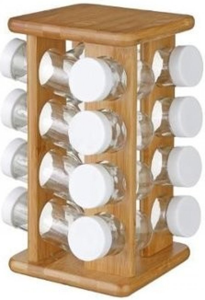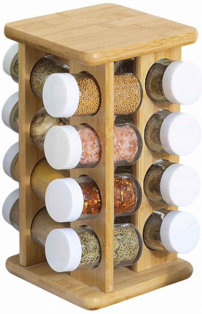 Vynikající nápad, jak uschovat různé druhy koření, a zároveň je mít vždy při ruce. Sadu šestnácti kořenek, které jsou uloženy v otočném stojanu, můžete mít stejně dobře ve skříňce jako na kuchyňské lince. Také se bude dobře vyjímat na jídelním stole, kde každému umožní, aby si vybral svoji oblíbenou ingredienci.Objem jedné kořenky je 9 cl a rozměry 4x9 cm.