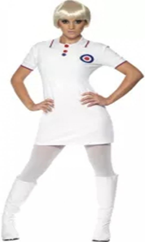Tento dámský kostým 60. léta "mod" v elegantní bílé barvě tě promění ve stylovou divu z Londýna.