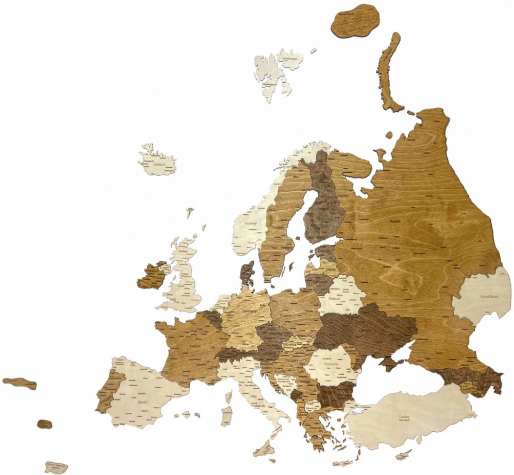 68travel Nástěnná dřevěná mapa Evropy XXL 156 x 136 cm
