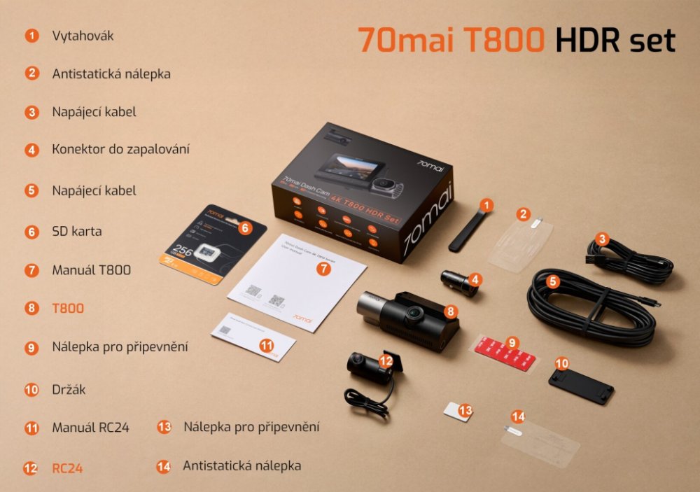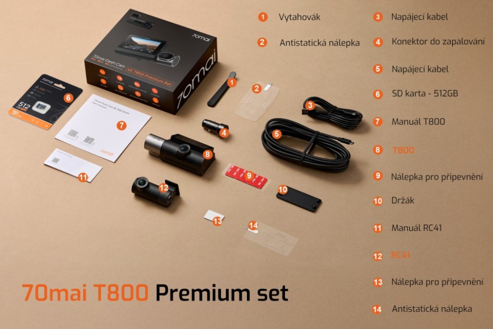 Tříkanálová duální autokamera 4K Přední a vnitřní kamera jsou integrovány do jediné jednotky a po spojení se zadní kamerou poskytuje kamera 4K T800 úplné trojnásobné pokrytí - přední, vnitřní a zadní - pro minimalizaci mrtvých úhlů. Duální přední a zadní kamera s technologií Sony STARVIS 2 Kamera 4K T800 integruje pokročilé snímače, které zajišťují výjimečnou kvalitu obrazu. Přední i zadní kamera využívají snímač Sony s technologií STARVIS-2. Ta poskytuje vizuální zážitek na elitní úrovni s mimořádně vysokou citlivostí a bohatými detaily za všech světelných podmínek. Tříkanálové nahrávání HDR Kamera 4K T800 podporuje záznam HDR ve všech třech kanálech, čímž stabilně zachycuje detaily světel a stínů a poskytuje tak rozšířený dynamický rozsah. Ať už jedete při zatažené obloze, jasném slunečním světle nebo projíždíte tunely a metrem, kamera 4K T800 vám pokaždé poskytne ohromující, živý obraz.MaiColor Vivid+Solution™ Zaměřte se na detaily, zajistěte přesnost a stabilitu barev70mai Night Owl Vision™ 70mai Night Owl Vision™ je další exkluzivní technologie, která přináší jasnější noční záběry s menším šumem, vyváženou expozicí a lepší kontrolou odlesků. Dokonce i poznávací značky v dálce jsou jasné a rozlišitelné. Při přiblížení vzniká jasný kontrast.Vnitřní kamera: noční vidění se 4 infračervenými světly Interiérová kamera vybavená čtyřmi infračervenými světly s vlnovou délkou 940 nm se automaticky přepne do režimu infračerveného nočního vidění za špatných světelných podmínek, např. když uvnitř vozidla není žádný zdroj světla nebo v tmavém prostředí, jako jsou garáže a tunely. To zajišťuje jasnější noční obraz uvnitř vozidla, zejména u větších vozidel, kde by jinak stíny na zadních sedadlech mohly zakrýt detaily.Nouzové nahrávání Kamera 4K T800 je nyní vybavena vylepšenou vyrovnávací pamětí pro nouzové nahrávání, která prodlužuje vyrovnávací paměť nad 10 sekund (až na 3 minuty)*. Zachycuje vyrovnávací paměť před nárazem, přesný čas nárazu a 30 sekund záznamu po nárazu, aby byly zaznamenány všechny důležité okamžiky. Tyto klipy se ukládají do exkluzivní složky "nouzové video", což zabraňuje jejich přepsání běžnými nahrávkami ve smyčce. Tato funkce podporuje důkladnou rekonstrukci nehody a pomáhá chránit před pojistnými podvody a falešnými obviněními. * Pokud je aktuální video v okamžiku kolize kratší než 10 sekund, převezme se předchozí segment, již nahraná část aktuálního segmentu a 30 sekund po kolizi. Pokud je delší než 10 sekund, uloží se jako nouzové video od začátku a prodlouží se o 30 sekund.Superkondenzátor Vyzkoušejte svobodu konstrukce superkondenzátoru, který spolehlivě funguje i při extrémních teplotách. Bezproblémově pracuje v širokém rozsahu teplot od -40 °C do 85 °C* a má působivou životnost, která zvládne 500 000* nabíjecích cyklů bez snížení výkonu. Velkokapacitní superkondenzátor zajišťuje automatické ukládání vašich videí i v případě výpadku napájení, čímž poskytuje nepřetržitou ochranu a bezpečnost. Je také navržen tak, aby byl šetrnější k životnímu prostředí - ekologičtější volba! *Výše uvedené údaje pocházejí z laboratoře 70mai. Výkon se může mírně lišit v závislosti na skutečných scénářích použití.Vestavěný systém GPS Díky této funkci zaznamenává kamera 4K T800 rychlost, čas a přesné souřadnice, což poskytuje neocenitelné důkazy pro určení polohy v případě nehody. Automaticky zaznamenává vaši trasu, kterou si můžete snadno prohlédnout prostřednictvím aplikace 70mai, což výrazně napomáhá optimalizaci trasy.ADAS Upozorňuje vás předem, abyste minimalizovali nebezpečí při jízdě: Systém ADAS upozorňuje na vybočení z jízdního pruhu, najetí do vozidla před vámi, hrozící kolizi a detekci chodců a cyklistů, čímž zvyšuje bezpečnost vaší jízdy.Wi-Fi 6 5GHzVychutnejte si bleskové rychlosti stahování díky nově modernizované Wi-Fi 6 v pásmu 5GHz.Režim obraz v obraze: Jedinečné tříkanálové zobrazení Kamera 4K T800 nabízí režim obraz v obraze, který umožňuje na obrazovce zařízení současně prohlížet záběry zepředu, zezadu a z interiéru. Pohled zepředu se zobrazuje uprostřed, zatímco na levé a pravé straně se zobrazují pohledy zezadu a do interiéru. Toto zobrazení z více úhlů vám poskytuje vševědoucí pohled na prostředí, v němž se pohybujete - uvnitř i vně vozidla - a zajišťuje tak dokonalou ochranu a klid. Kamera 70mai Dash Cam 4K T800 byla vyvinuta pro řidiče, kteří nechtějí nic ponechat náhodě. Díky dvěma 4K kamerám a jedné další kameře v interiéru zaznamenává celou jízdu, od předního nárazníku až po zadní sedadla. Kombinace senzorů Sony STARVIS 2, inteligentních funkcí asistence řidiče a připojení 4G z ní činí jednu z nejkomplexnějších palubních kamer ve své třídě.Kompletní přehled v ostrém rozlišení 4KT800 natáčí současně přední, zadní a vnitřní prostor. V prémiové sadě s RC41 používají přední a zadní kamera senzory Sony STARVIS 2 IMX678, které natáčejí v rozlišení 4K (3840 x 2160 pixelů) při 30 snímcích za sekundu. RC24 v sadě HDR je vybavena senzorem Starvis 2 IMX662 a natáčí v rozlišení 1080p Full HD.Vnitřní kamera natáčí v rozlišení 1080p a využívá infračervené záření, aby poskytovala jasný obraz i ve tmě. S úhly záběru 146° vpředu a vzadu a 147° v interiéru uvidíte opravdu vše.