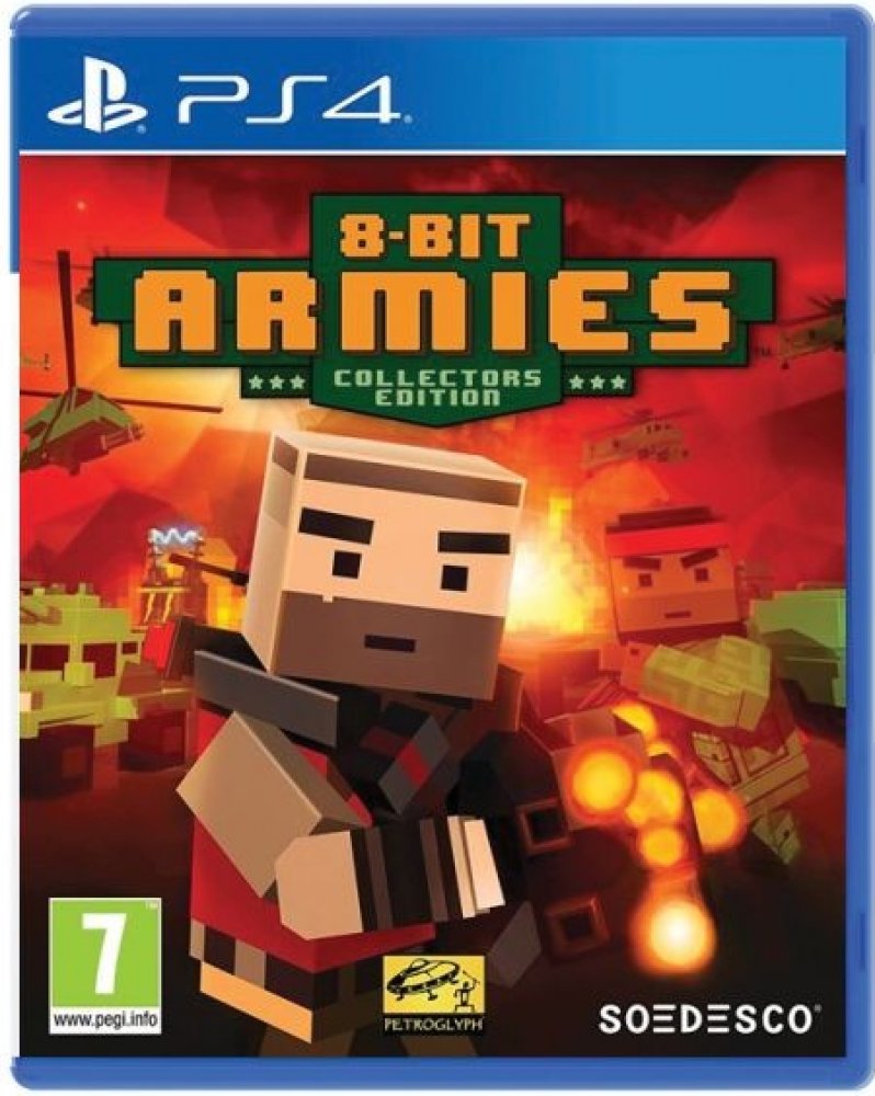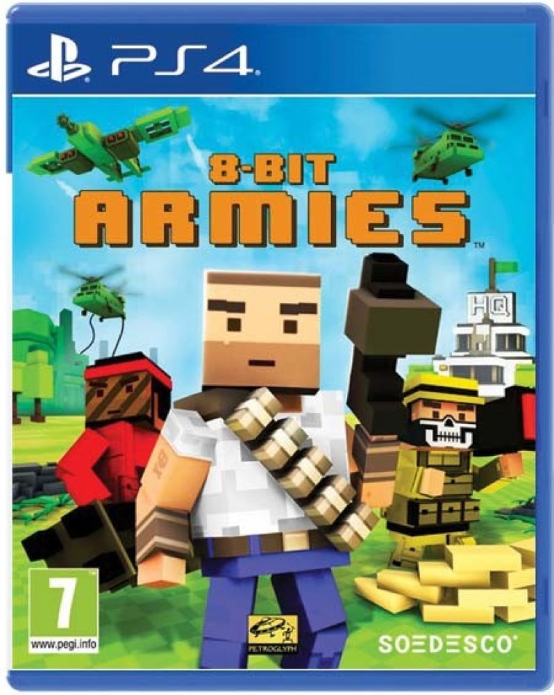 PS4 8-Bit Armies je kvazi-retro strategická hra v reálném čase, která využívá zjednodušenou verzi vzorce Command & Conquer, která obsahuje 25 misí kampaně, 12 misí v kooperaci, multiplayer pro 8 hráčů a zničitelná prostředí. Jeho specifické vizuální téma zahrnuje 3D engine s hranatou grafikou inspirovanou 8bitovými videohrami.