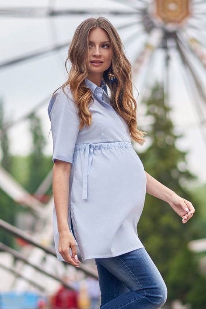 Pohodlná těhotenská a kojicí košile se zapínáním na knoflíky. Tato elegantní košile Vám rozjasní každý ponurý den. Je vybavená límečkem a knoflíky. Středová léga skrývá zapínání na knoflíky, díky kterému bude nakojení Vašeho miminka hračkou. V pase se nachází vsunuté šňůrky, které se mohou stáhnout a uzpůsobit halenku měnící se postavě. Na bocích jsou umístěné rozparky. Halenka má krátké rukávy s ...