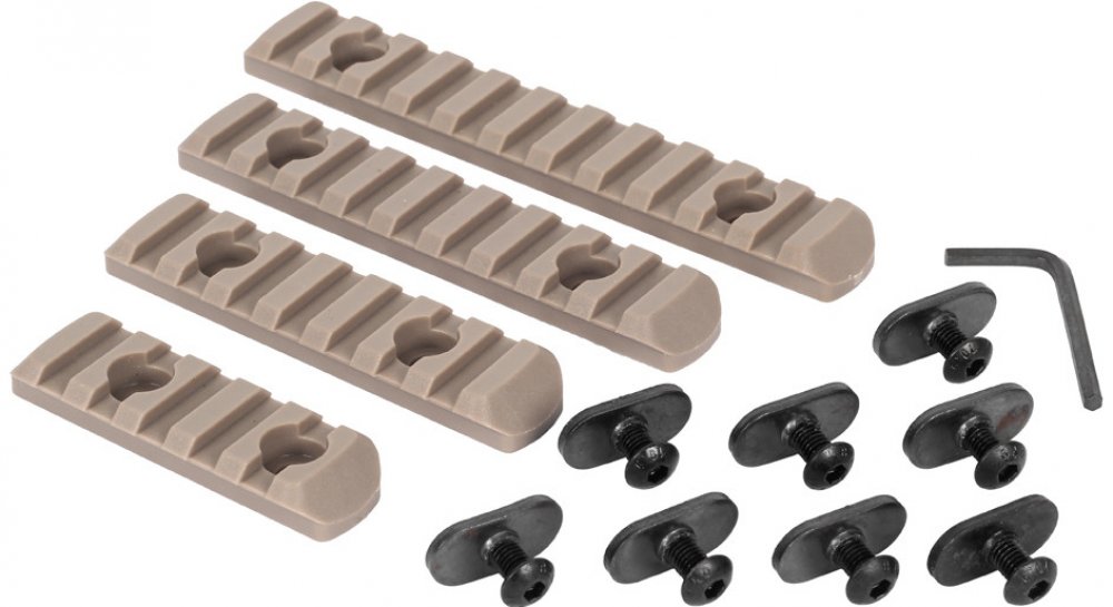 Set čtyř polymerových RIS lišt určených pro M-LOK předpažbí. Lišty mají 11, 9, 7 a pět slotů, takže si můžete předpažbí přizpůsobit přesně Vašim potřebám.