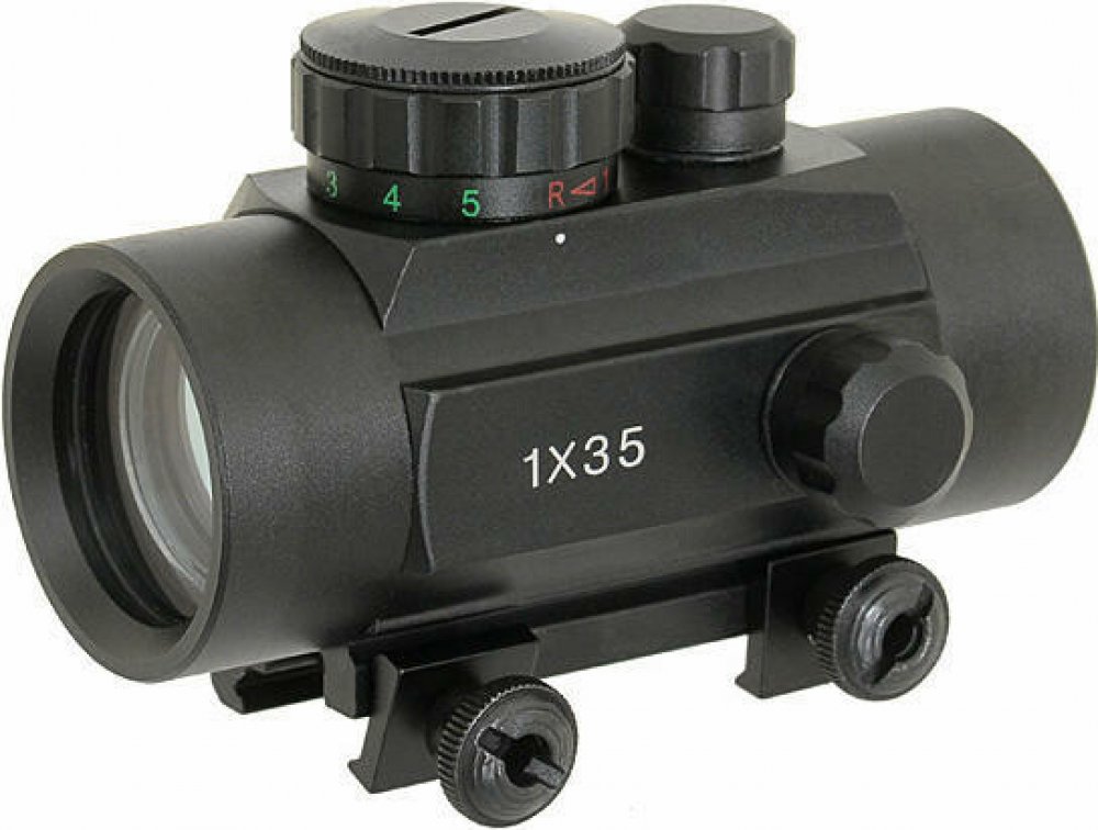Celokovový tubusový kolimátor pro snadnou montáž na běžnou RIS kolejnici. Je vybaven červeným bodem a umožňuje regulovat jeho intenzitu. Kolimátor je napájen jednou baterií CR2032, která je součástí balení. Součástí balení jsou i dvě ochranné krytky.