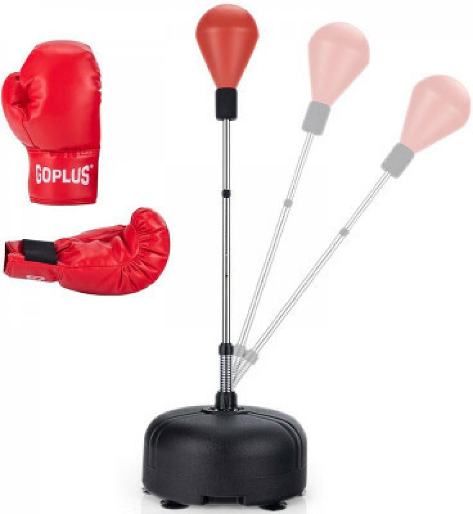 Boxovací pytel SP37558RE se stojanem a rukavicemi - A Funkce, vlastnosti a další informace Integrovaný PU a vysoce kvalitní pružina: Ve srovnání s většinou boxerských koulí z PVC na trhu je tento vysoce kvalitní boxovací pytel vyroben z integrovaného PU, který je odolnější vůči nárazům a trvanlivější. Vysoce kvalitní pružina je určena k zajištění toho, aby se pytel po každém úderu rychle vrátil do původní polohy. 4stupňová nastavitelná výška: Bo