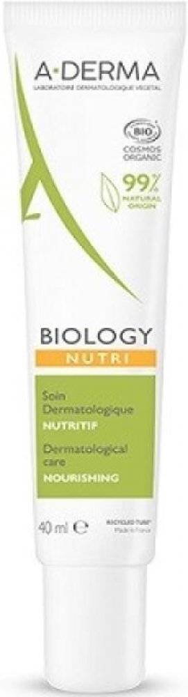 A-DERMA BIOLOGY Dermatologický VÝŽIVNÝ krém HYDRATAČNÍ poskytuje 24 h hydrataci suché pleti. Obsahuje aktivní látky, které pleti zajišťují optimální snášenlivost a navrací jí rovnováhu.