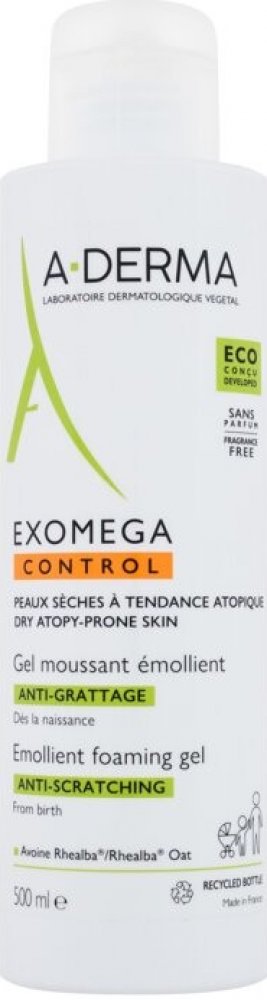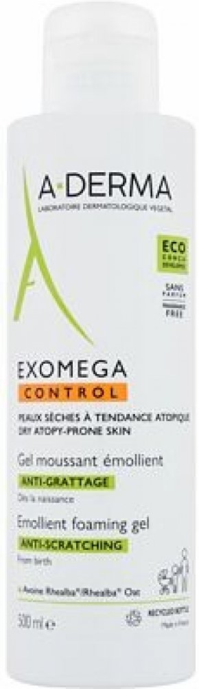 Aderma Exomega Control Zvláčňující pěnivý gel pro suchou kůži se sklonem k atopii 500 ml Zvláčňující pěnivý gel čistí a pečuje o suchou a namáhanou pokožku. Zklidňuje podráždění, redukuje pocity pnutí a diskomfortu.