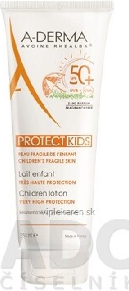 Prostředky na ochranu proti slunečnímu záření neposkytují 100% ochranu před ultrafialovým zářením. K udržení ochrany aplikaci opakujte, zejména při pocení, po koupání nebo osušení ručníkem. Nezůstávejte na slunci příliš dlouho, i když jste použili prostředek na ochranu proti slunečnímu záření. Nadměrná expozice slunci představuje vážné zdravotní riziko. Francouzská dermokosmetická značka A-DERMA je specialistou na křehkou kůži celé rodiny. V srdci jihozápadní Francie pěstuje jedinečnou odrůdu, oves Rhealba®, v souladu se zásadami organického zemědělství. Ve všech přípravcích značky A-DERMA je použit výtažek z mladých výhonků ovsa Rhealba®, neboť právě ty obsahují veškerou sílu budoucí rostliny a mnohem více důležitých aktivních látek, než je obsaženo v zrnech (saponiny a flavonoidy, které snižují podráždění kůže), a naopak neobsahují proteiny, které by mohly vyvolat podráždění.