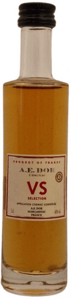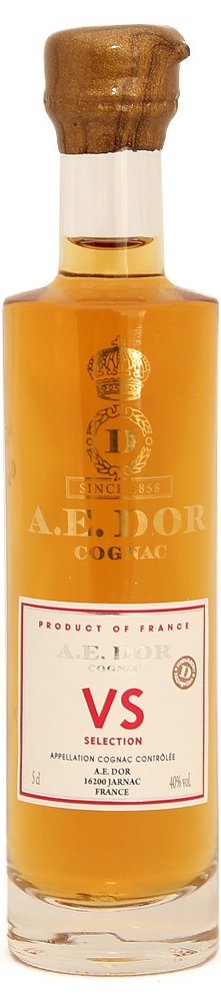 A.E. Dor VS Cognac 0,05L pochází z Francie. Je to koňak velmi jemného a ovocného charakteru. Vůně je vždy příjemná a jemná s jemnými tóny ovoce a vanilky. Dlouhému závěru dominuje karamelová sladkost.