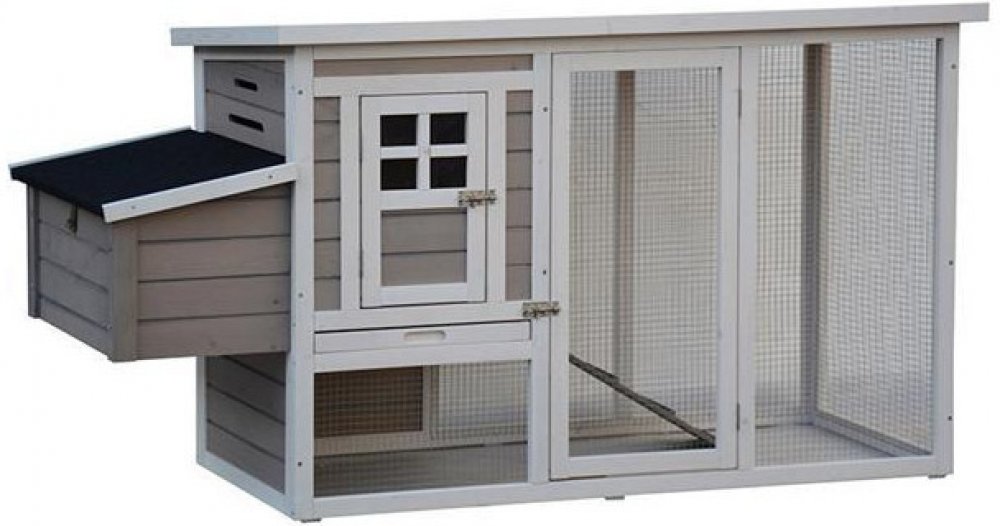 Venkovní králíkárna pro králíky a další drobné savce, využitelná i jako kurník se snášedlem pro slepice. Z uzavřeného domku se samostatnými dvířky je přístup do dalšího prostoru využitelného jako doupě nebo snášedlo a přístup do zastřešeného venkovního výběhu. Domek se snadno čistí díky výsuvnému šuplíku. Díky jeho umístěný nad zemí poskytuje pod podlahou další prostor pro pohyb. Králíkránka / kur...