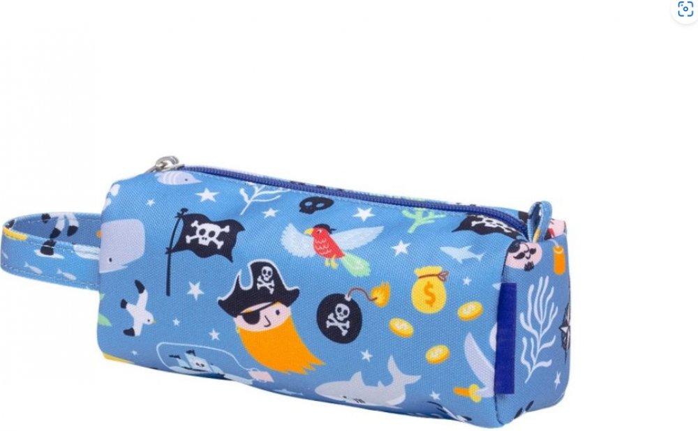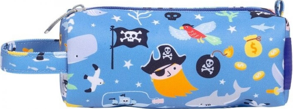 Modré pouzdro na pastelky, fixy nebo psací potřeby s pirátským potiskem je vyrobené z udržitelného polyesteru. Je ideální na cesty, na nošení do školy nebo na kroužky. Pouzdro se zapíná na zip, je podšité a má pohodlnou rukojeť. Tento skvělý penál udrží všechna vaše pera a tužky bezpečně na jednom místě.