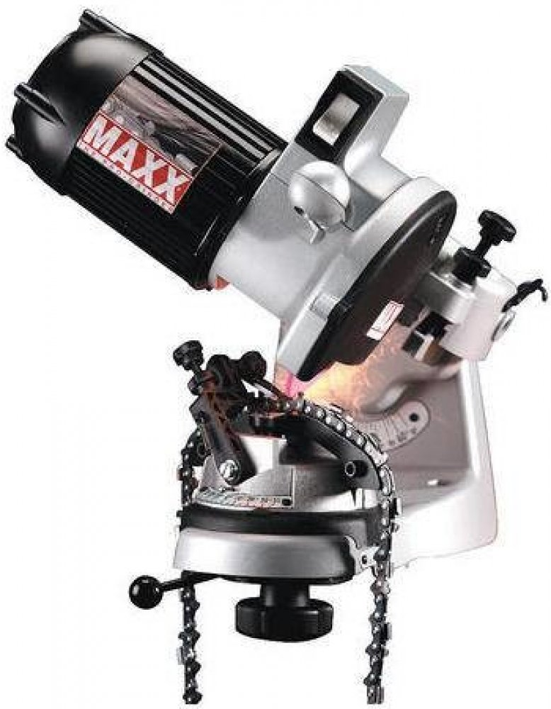 MAXX-Profi bruska na řetězy je velmi kvalitní bruska pilových řetězů s automatickým upnutím řetězu v upínacím svěráčku. Je vhodná pro časté broušení všech typů pilových řetězů .1/4", .325", .3/8", .404".Brusná hlava může být skloněna oboustranně, řezné zuby jsou broušeny z vnějšku dovnitř, tím je dosaženo optimálního brusného výsledku. S osvětlením.Elektromotor: 230 V; 180 W; 50 Hz, 2 A,Otáčky: 2....