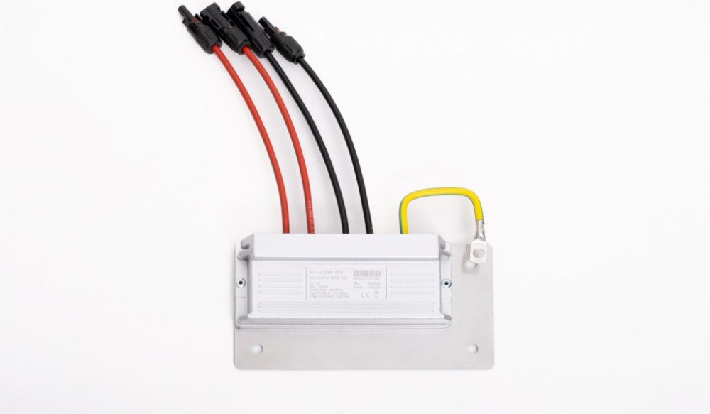 Jednotka je s ohledem na snadnou implementaci do stringu realizována jako průchozí - oba póly stringu se připojí do jednotky a oba z nich také vystupují. Spojení je realizováno klasickými MC4 konektory (na vstupu s integrovanou pojistkou) a vodiči s o průřezy 6 mm2 (v některých verzích i 10 mm2) s dvojitou izolací a barevným rozlišením.