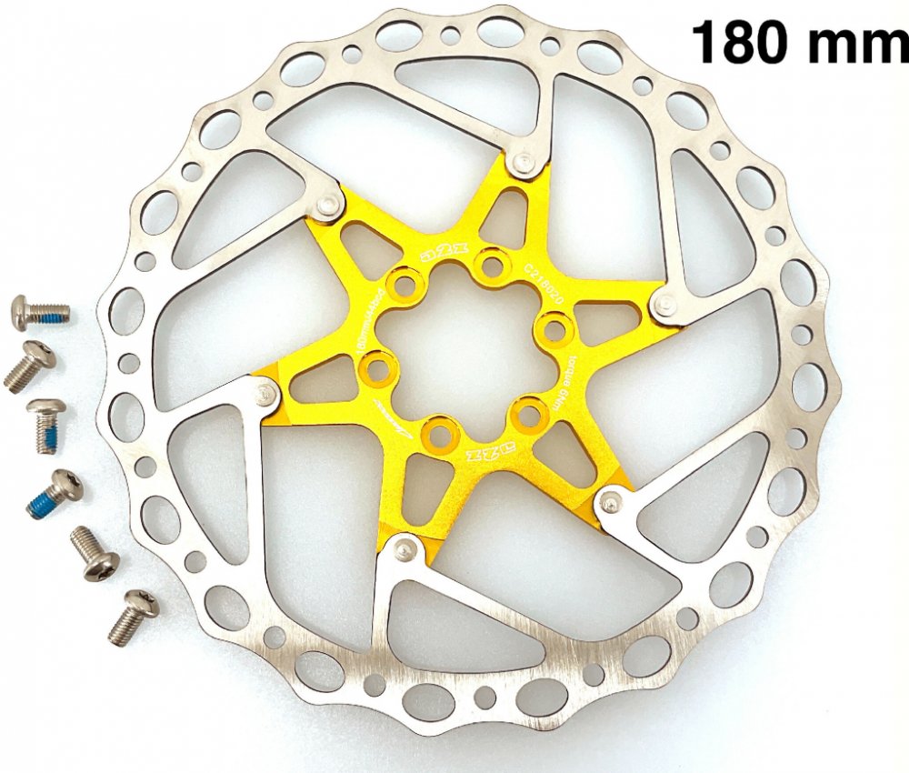 Brzdový kotúč 180 mm s duralovým stredom zaisťujúci rýchlejší odvod tepla.