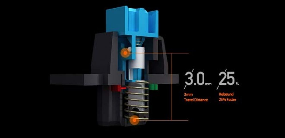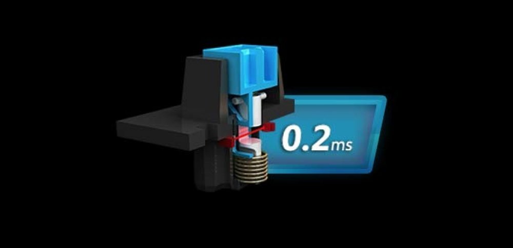Tato technologie využívající infračervené switche dokáže reagovat rychlostí 0,2 ms, což je rychlost, kterou budete jinde hledat jen těžko. Výkonné infračervené switche vám pomohou vyvarovat se nechtěným dvojitým stiskům kláves a klávesnice je navíc díky nim extrémně tichá.