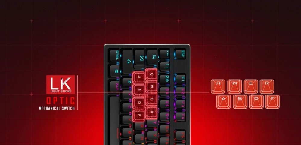 Herní klávesnice s RGB podsvícením, kterým dokonale oživíte design svého domova a vaše hraní získá nový rozměr. Klávesnice je navíc vybavena technologií Light Strike, která vám přináší nejrychlejší možnou odezvu kláves 0,2 ms.