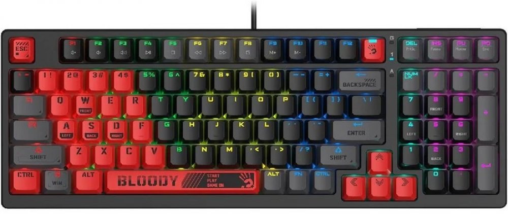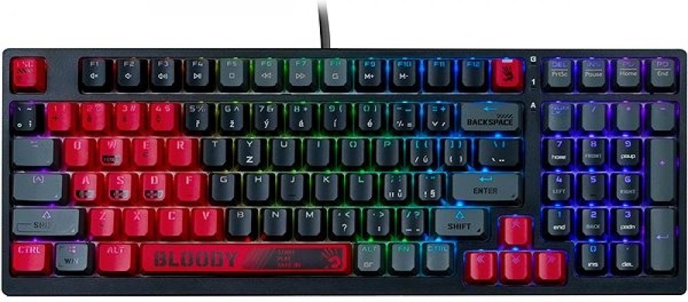 A4tech Bloody S98 Sports 80%, Red Switch, USB, černá/červená - CZ herní klávesnice je bezkonkurenční prostředek pro všechny pařmeny, kteří jsou odhodlaní ve světě her zdolat i toho nejtěžšího protivníka. Nepatrná reakce herní klávesnice a bytelná tlačítka vám poskytnou superrychlé pohyby, takže dopadnete každého protivníka. Červená a Černá barva A4tech Bloody S98 Sports 80%, Red Switch, USB, černá...