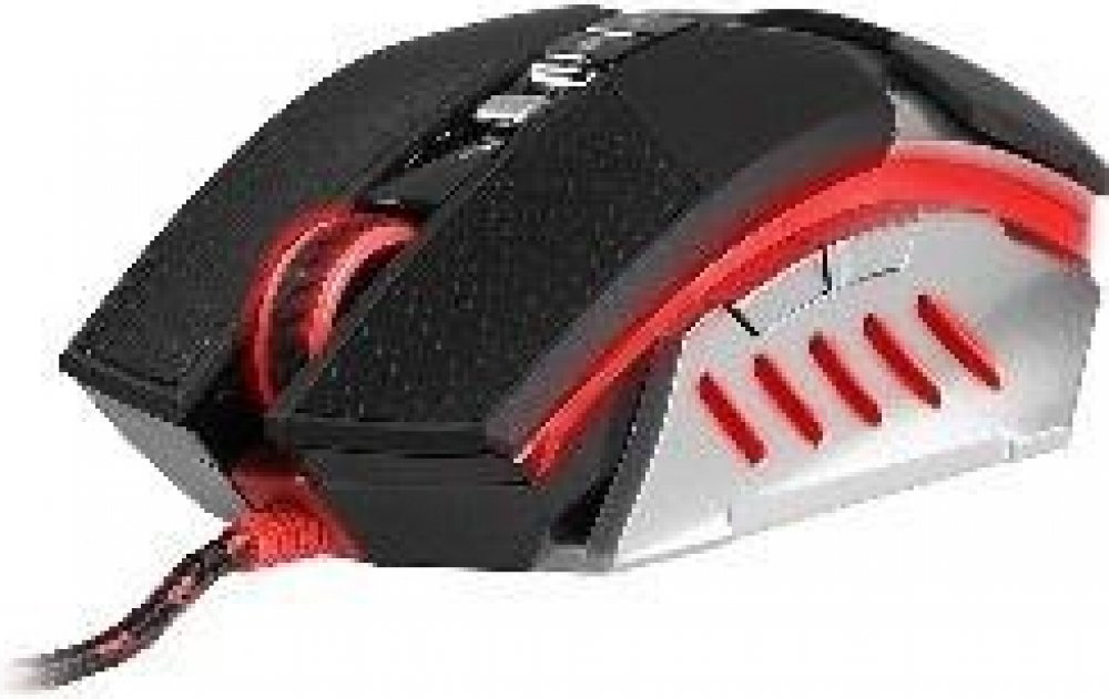 Herní myš T50 v propracovaném vzhledu a skvělé ergonomii. Pogumovaná tlačítka pro lepší komfort.