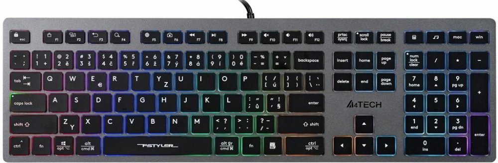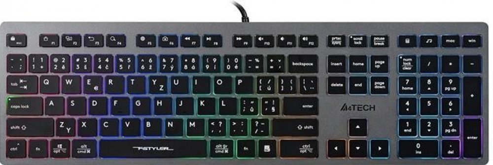 A4tech FX60Nízkoprofilová klávesnice s LED podsvícenímA4Tech FX60 je klávesnice s nůžkovými spínači a neonovým LED posvícením, navržená pro tiché, plynulé a pohodlné psaní při každodenní práci doma i v kanceláři. Pomocí funkce přepínání operačních systémů se rozložení kláves okamžitě přizpůsobí konkrétnímu systému, díky čemuž můžete plynule pracovat napříč různými platformami bez zdlouhavého nasta...